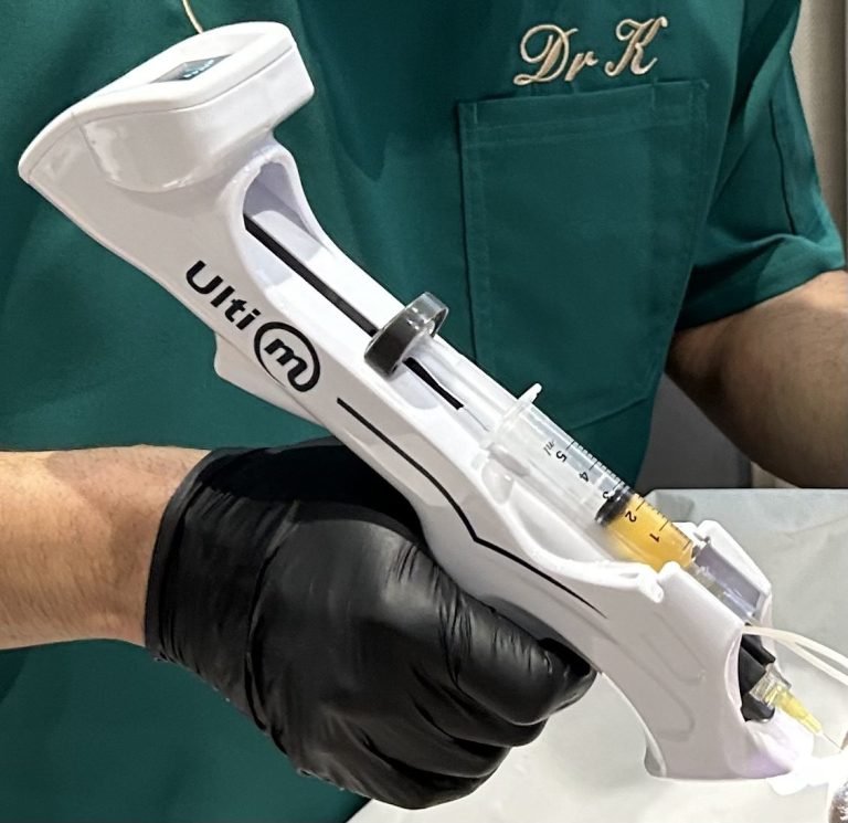 Efficient, highly controlled & speedy multiple injections, ensure the PRP is evenly distributed across the treatment area. This uniformity is crucial for the success of PRP therapy, as it guarantees the regenerative components reach the entirety of the target area, with the numerous points of injection resulting in a higher rate of stimulated growth factors compared to hand-held needle-stick administration, whilst minimizing patient discomfort & reducing overall treatment time.